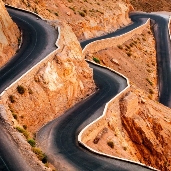 After that, the route leads you to the legendary Ait Ben Haddou, a UNESCO-listed ksar known for its mud-brick architecture. You’ll wander through its narrow alleys, feeling as if you're walking through centuries of history. Then, the drive continues through Ouarzazate and into the peaceful Draa Valley, where endless palm groves create a refreshing contrast with the desert’s warm tones.